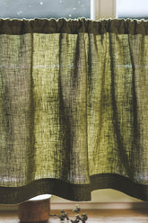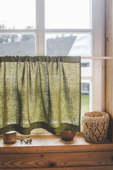 Verleihen Sie Ihrem Raum eine natürliche Note mit diesem moosgrünen Café-Vorhang aus 100 % natürlichem Leinen. Perfekt für Küchen oder gemütliche Ecken, filtert er sanft das Licht und sorgt für Privatsphäre. Die erdige moosgrüne Farbe passt wunderbar zu Landhaus-, rustikalen oder modernen Stilen.