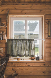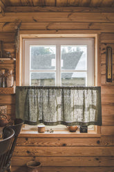 Schwerer Café-Vorhang aus waldgrünem Leinen
