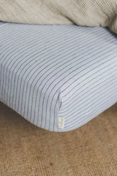 Graues Leinen-Spannbettlaken mit schwarzen Streifen