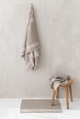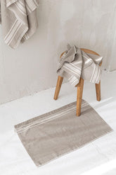 Leinen-Badematte im französischen Stil mit natürlichen Streifen. Wunderschön gefertigt aus hochwertigem europäischem Leinen mit natürlicher Textur.