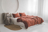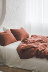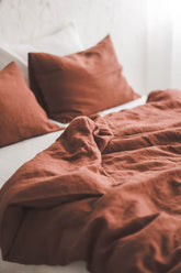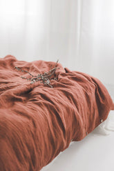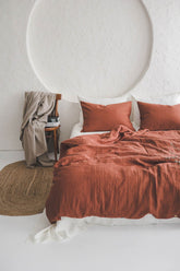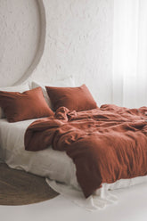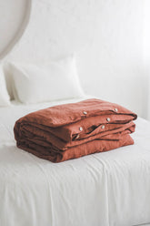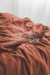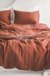 Bettbezug aus Leinen in gebranntem Orange mit Knöpfen