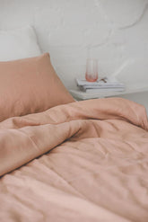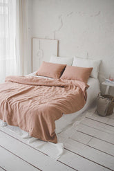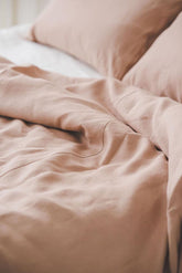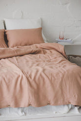 Bettbezug aus Leinen in Misty Rose mit Knöpfen. Wunderschön gefertigt aus hochwertigem europäischem Leinen mit natürlicher Textur.