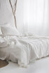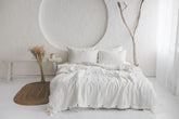 Cremeweißer Bettbezug aus Leinen mit Knöpfen. Wunderschön gefertigt aus hochwertigem europäischem Leinen mit natürlicher Textur.
