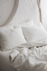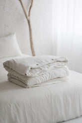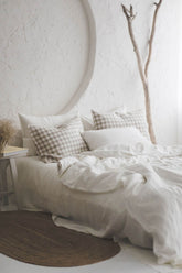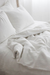 Cremeweißer Bettbezug aus Leinen mit Knöpfen