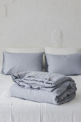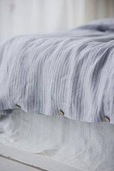Grau/schwarz gestreifter Bettbezug aus Leinen mit Knöpfen