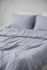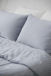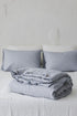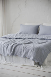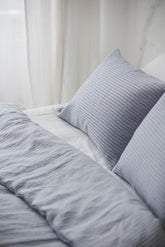 Grau/schwarz gestreifter Bettbezug aus Leinen mit Knöpfen. Wunderschön gefertigt aus hochwertigem europäischem Leinen mit natürlicher Textur.