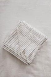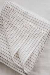 Weißes Leinen-Bettlaken mit schwarzen Streifen. Wunderschön gefertigt aus hochwertigem europäischem Leinen mit natürlicher Textur.