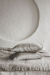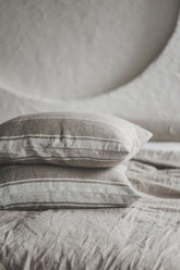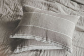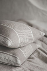 Erleben Sie zeitlose französische Eleganz mit diesem handgefertigten Leinen-Kissenbezug mit klassischen Naturstreifen. Aus 100 % reinem Leinen gefertigt, bietet er eine weiche, atmungsaktive Textur, die mit jeder Wäsche noch schöner wird. Das dezente Streifendesign verleiht ihm eine rustikale und zugleich edle Note und schafft so eine gemütliche und mühelos stilvolle Atmosphäre in Ihrem Schlafzimmer oder Wohnraum. Der Bezug ist komfortabel und langlebig und verfügt über einen Hotelverschluss für ein nahtloses, maßgeschneidertes Finish. Jedes Stück wird individuell und mit Sorgfalt gefertigt, um Qualität und Charakter bis ins kleinste Detail zu gewährleisten. In verschiedenen Größen erhältlich.