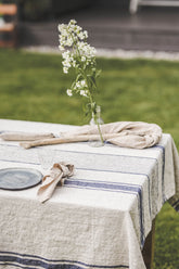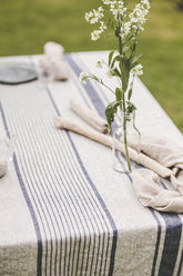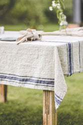 Leinentischdecke im französischen Stil mit blauen Streifen