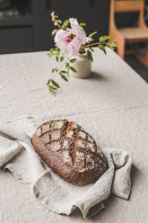 Tischdecke aus natürlichem Leinen mit Gehrungsecken