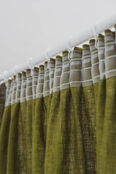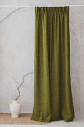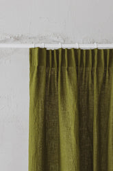 Leinenvorhang mit Bleistiftfalten in Moosgrün