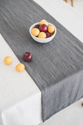 Anthrazitgrauer Tischläufer aus Leinen mit Gehrungsecken