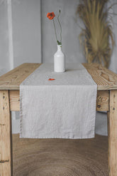 Sandfarbener Tischläufer aus Leinen