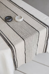 Tischläufer aus Leinen im französischen Stil mit schwarzen Streifen