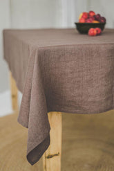 Kakaofarbene Leinentischdecke. Wunderschön gefertigt aus hochwertigem europäischem Leinen mit natürlicher Textur.