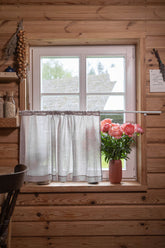 Transparenter Café-Vorhang aus Leinen in weißem Sand