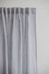 Unser grau-schwarz gestreifter Leinenvorhang besteht aus 100 % europäischem mittelschwerem Leinen und weist ein kräftiges, aber ausgewogenes Streifenmuster auf, das jedem Raum optische Reize und Struktur verleiht. Die natürliche Leinenstruktur und der weiche Fall verleihen ein edles, modernes Flair – perfekt für moderne und klassische Innenräume.
