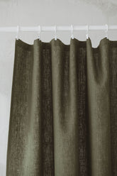 Schwerer, waldgrüner Leinen-Vorhang mit schlichtem Saum, für Clips