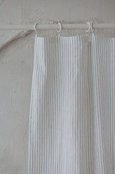 Der weiße Leinen-Vorhang mit schwarzen Streifen wirkt frisch und luftig. Er ist aus 100 % Naturleinen gefertigt und vereint Schlichtheit mit einem Hauch moderner Eleganz. Die feinen schwarzen Streifen verleihen ihm einen subtilen Rhythmus und eine dezente Eleganz – perfekt für helle, natürliche Interieurs.