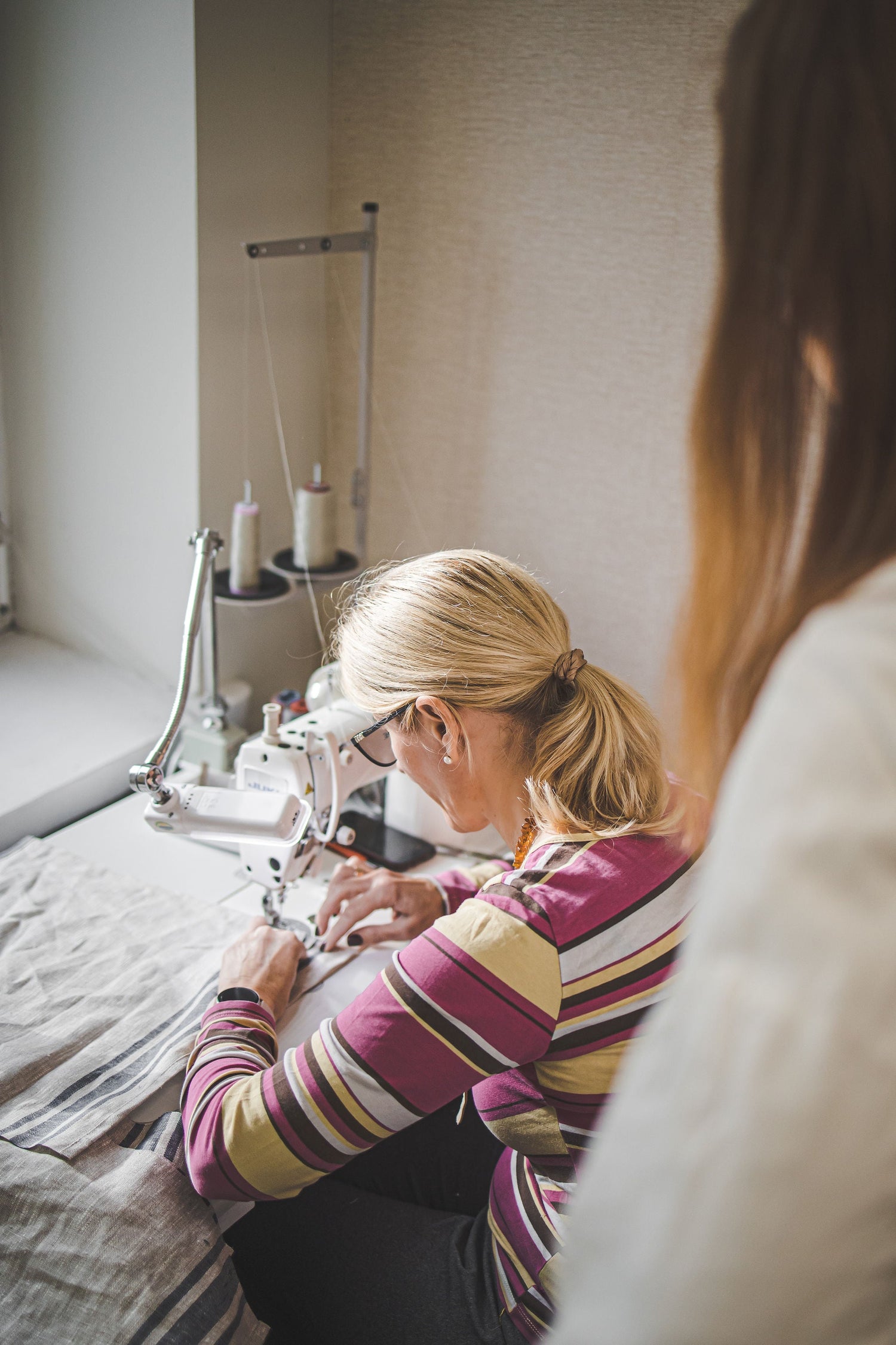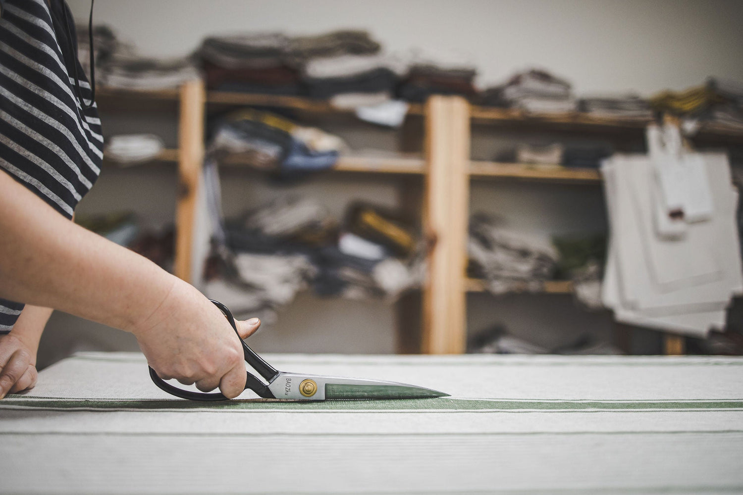 Jedes Stück wird in unserem gemütlichen Atelier sorgfältig von Hand zugeschnitten und genäht, wo wir jeder Kreation viel Zeit und Aufmerksamkeit widmen.