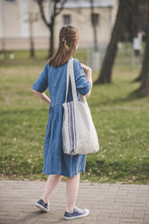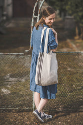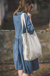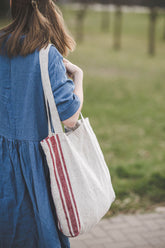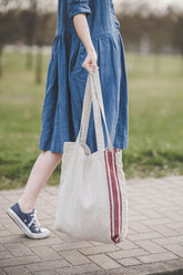 Leinen-Einkaufstasche mit kirschroten Streifen an den Seiten