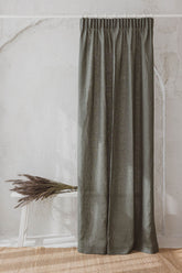 Leinenvorhang mit Bleistiftfalten in Graugrün