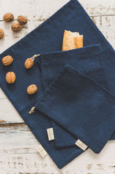Mitternachtsblauer Brotbeutel aus Leinen. Wunderschön gefertigt aus hochwertigem europäischem Leinen mit natürlicher Textur.