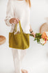 Olivgrüne Leinenhandtasche. Wunderschön gefertigt aus hochwertigem europäischem Leinen, mit zusätzlichem Leinenfutter innen. Die perfekte Tasche für den Transport kleiner Dinge für einen langen Tag.