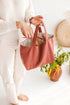Terrakottafarbene Leinenhandtasche. Wunderschön gefertigt aus hochwertigem europäischem Leinen, mit zusätzlichem Leinenfutter innen. Die perfekte Tasche für den Transport kleiner Dinge an einem langen Tag.